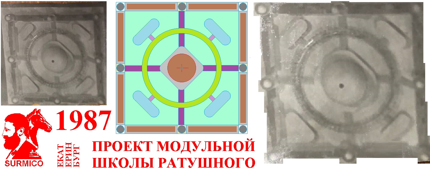 Чудом сохранившееся старое фото показывает объёмную архитектурную модель действительно огромной Модульной Школы Ратушного разработанной в 1987 году на квартире автора в старом доме на Маркса 8 а Екатеринбкрге. Уже весной модель была представлена в «Учительскрой газете» коллективу Адамского "Эврика", далее автор принял участие в Московской конференции педагогической общественности, где оказался в одной редколлегии с Эдуардом Днепровым и Евгением Куркиным. Летом 1988 года принял частие в базисной организационно-деятельностной игре ВНИК »Школа», которую провел Юрий Громыко, в сентябре 1988 года прибыл на площадку Евгения Куркина где вскоре оказался в школе номер четыре. Разумеется педагоги города не могли в тот момент оценить все мегатонны разработок автора. Но я предложил им другой базисный компонент. Просто вложил в эксперимент все свои знания, весь свой опыт, все свои способности и главное душу.
