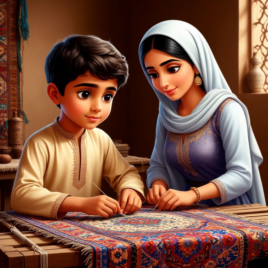 Она привела его в скромный дом на окраине. Внутри стоял огромный ткацкий станок, а на стенах висели ковры такой красоты, что у мальчика перехватило дыхание. На каждом ковре переливались не просто узоры — будто целые сады с журчащими ручьями и птицами в полёте оживали под взглядом.