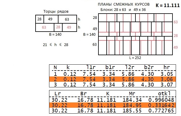 Основной критерий кладки К = 11.181. Габариты двух типов блоков: