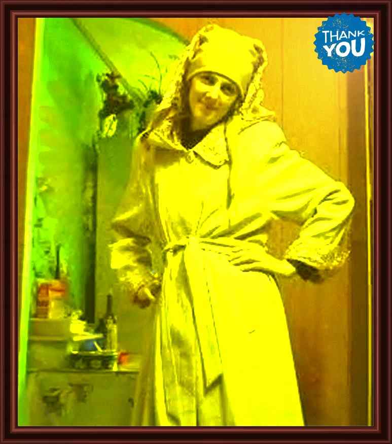 - плащ, с нашитой на воротник прозрачной узорчатой тканью