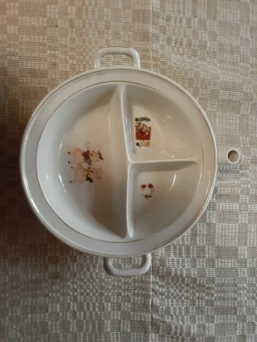 Из этой тарелочки кормили моего папу и тетю, потом меня с сестрой, потом я кормила своих сыновей.