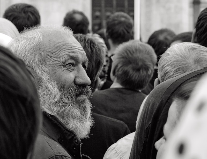 И потому он идёт и разговаривает неизвестно с кем. А, может, просто ему есть что сказать миру, но мир его не видит и не слышит. И человеку мир тоже стал не нужен. Идёт в толпе, иногда натыкаясь на встречных людей, машинально обходит их. И снова уходит из пустоты окружающего мира в свою реальность, где он видит своих, родных ему, людей.