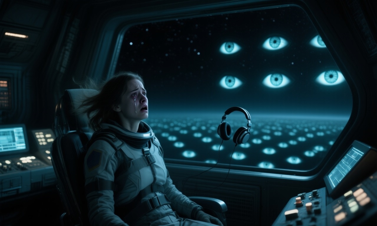 На экране белое сияние сменилось картиной, от которой кровь застыла в жилах. Это была не звездная карта. Это был вид изнутри. Бесчисленные точки света, но это были не звезды. Это были глаза. Мириады не моргающих, холодных, бесчеловечных глаз, уставленных на их крошечный корабль из глубин космоса, который был вовсе не пустым. Он был полон. И он наблюдал.