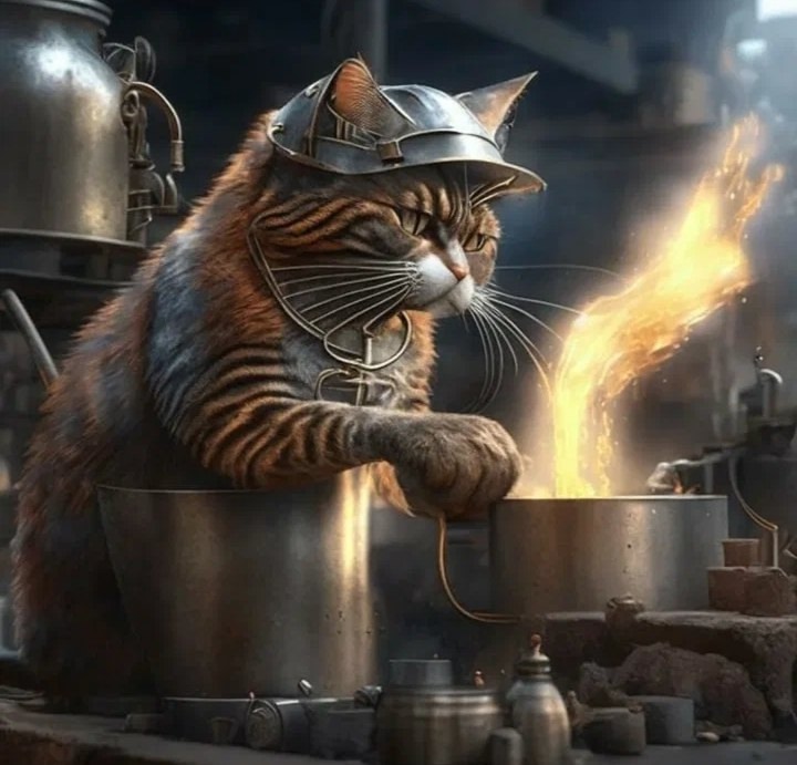 В огромном помещении Кот увидел трубы, склянки, какие-то зубчатые колеса - шестеренки. Всё было окутано голубоватым паром и подсвечивалось с разных сторон немигающими прожекторами. Страшно, необычно, но очень интересно.