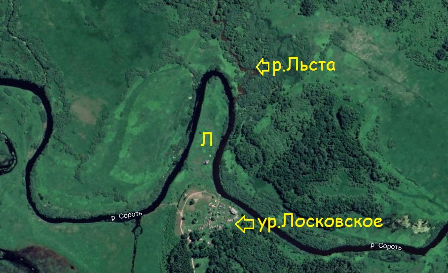 Река Льста протекает в Псковской области и впадает в реку Сороть. Название реки является "буквенным", по форме устья на карте. Река Льста впадает в излучину Сороти в виде буквы "Л", как видно на фото. Название реки буквально "большая Л" или Ль-ста. Основа "ста" также встречается в гидронимах и означает большой или огромный размер, например река Мста, город Кстово.