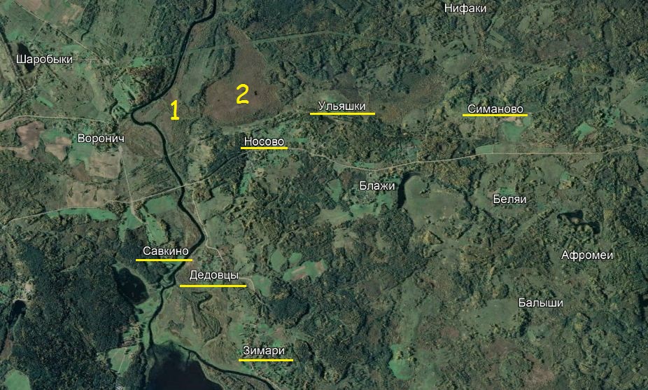 Вокруг главного гидронима Сороти находятся деревни, которые также отражают его образ и обратите внимание, что многие названия во множественном числе именно по этой, "групповой" причине: