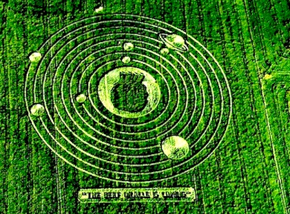 В центре рисунка - сердце в круге солнца, его окружают орбиты планет Солнечной системы.