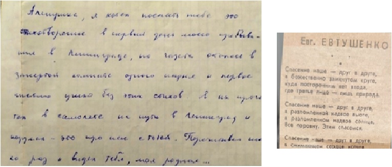 Заметки на полях. Ещё раз про любовь и про (не)случайные совпадения. Вскоре после того, как мы поженились, случилась первая длительная разлука, и только почта СССР помогла нам выжить. Вот отрывок из Валериного письма и вырезка из газеты.