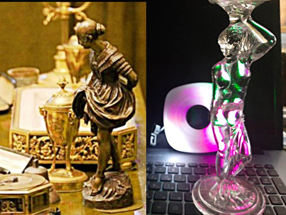 Я же не Алексей Толстой, поехал в Гусь Хрустальный, чтобы купить подобную статуэтку, даже не зная бывает ли такая. Не нашёл в магазине бутике хрустального завода, встретил в «Музее хрусталя». Так и возвращаясь ни с чем, вернулся в бутик, спросил у продавцов: «Бывает ли такая статуэтка, какую я видел в музее? Мне ответили, что она вон на витрине, женская хрустальная статуэтка действительно стояла на витрине, я купил. Посмотрел свои фотографии, когда был предыдущий раз в этом магазине, на фотографии была эта статуэтка. Фотоаппарат её видел, а я нет, мистика какая-то.