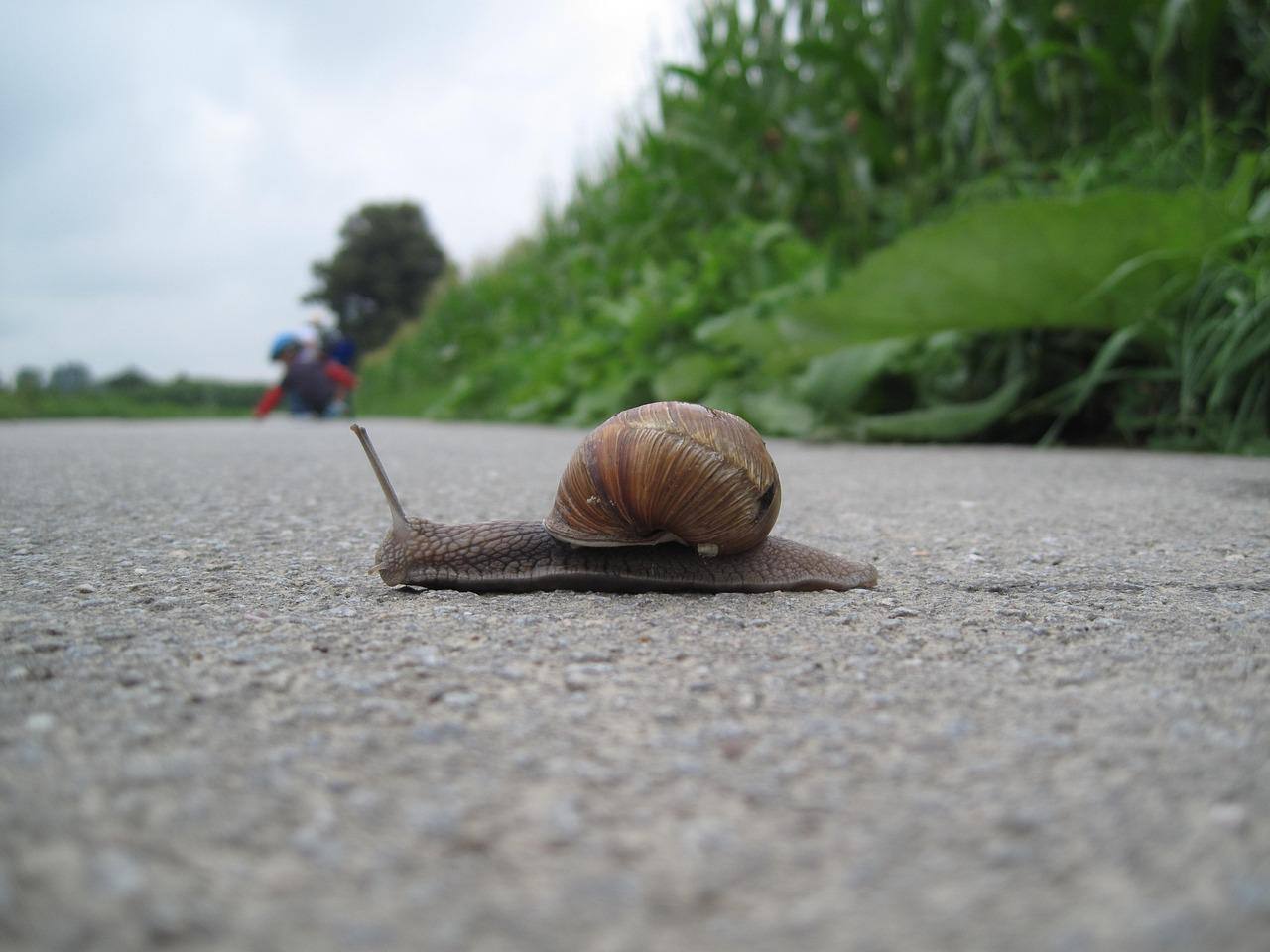 Она шевелит усиками, тащит на себе тяжёлый домик и оставляет за собой мокрый, блестящий след.