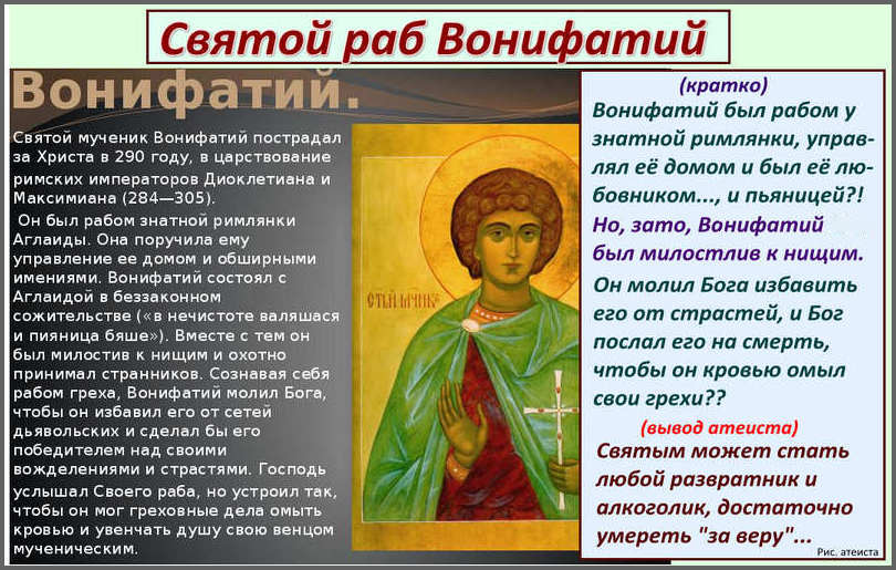 Таким образом Бог решил сразу многие задачи; Он избавил Вонифатия от греховности и