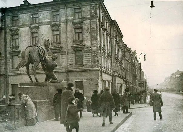 Фото - около 1935 г. Так называемый "Литературный дом" на Невском, у Аничкова моста. Здесь жили или бывали Панаев, Краевский, Белинский, Одоевский, Соболевский, Соллогуб, Достоевский, Гончаров, Герцен, Огарёв, Анненков, Тургенев, Тютчев, Писарев, Горький. У Краевского перед отъездом на Кавказ был Лермонтов.