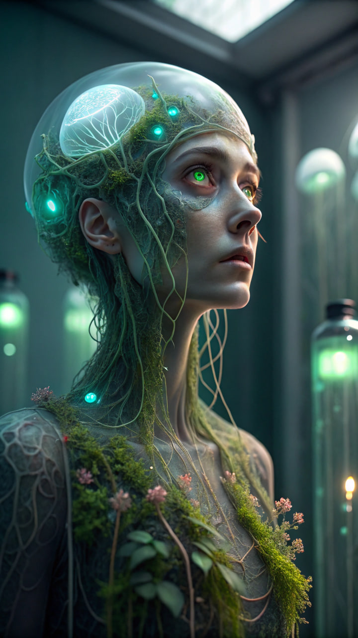 В отличие от других биороботов, она не просто выполняла программу. Она... наблюдала. Мара заметила это случайно, просматривая записи камер. Ева-12 останавливалась возле увядающих растений дольше необходимого. Её пальцы — сложная структура из модифицированных корней и мицелия — касались листьев с чем-то похожим на нежность.