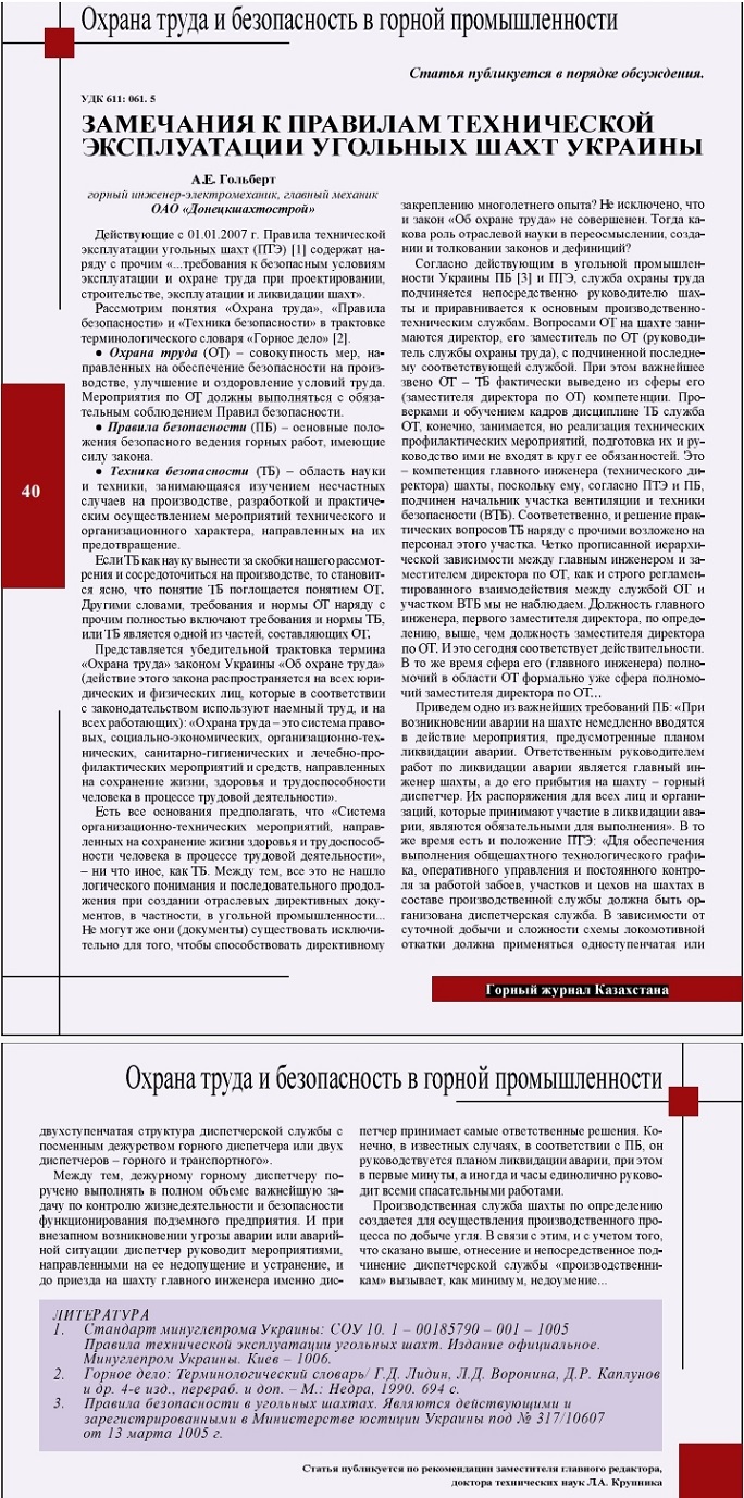 Гольберт А.Е. Замечания к Правилам технической эксплуатации угольных шахт Украины