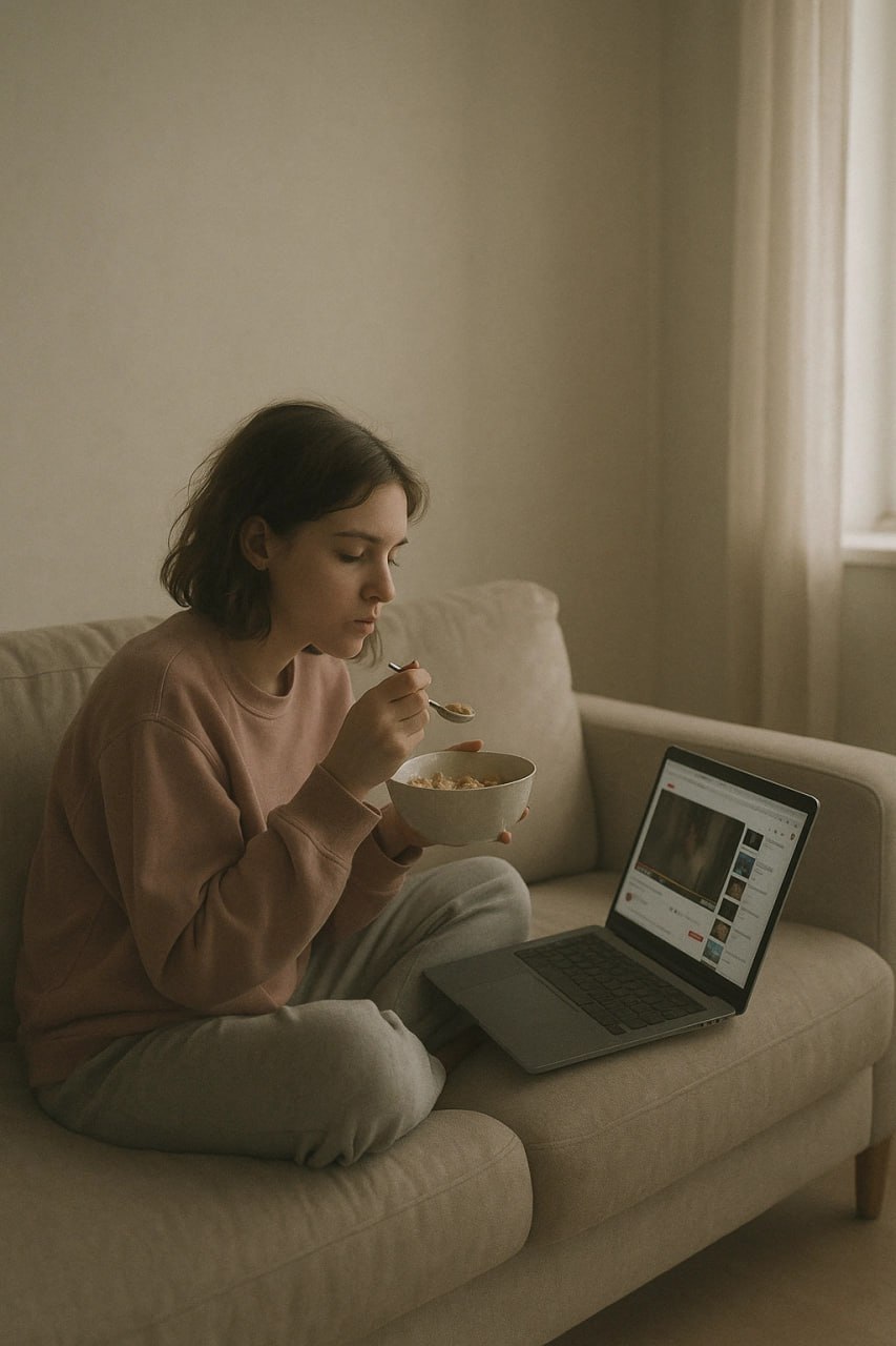 Иду в кухню, чтобы насыпать хлопья в молоко. Сажусь за стол и начинаю есть. Где-то на середине видео я понимаю, что еда в меня не лезет. Остаётся немного, но даже эту малость жалко выкидывать. Уговариваю себя на великий подвиг – вылить остатки в туалет. В эту минуту, не знаю зачем, я смотрю в сторону раковины. Когда-то белая, сейчас она вся в пятнах жёлтого налёта.