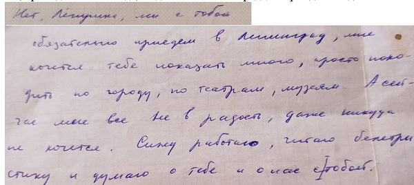 Потом дошли до его общаги, и я наконец увидела то самое здание на ул. Хлопина, 13, корпус 1, кв. 26, куда отправляла так много писем в 1978 и 1983 годах. Туда нас, естественно, не пустили, только снизу смогли посмотреть на окна его давней квартиры.