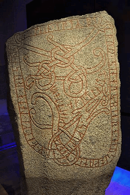 Надпись на руническом камне гласит: «Скуле и Фольке установили этот камень по своему брату Хусебьёрну. Он заболел в пути, когда они собирали дань на Готланде».