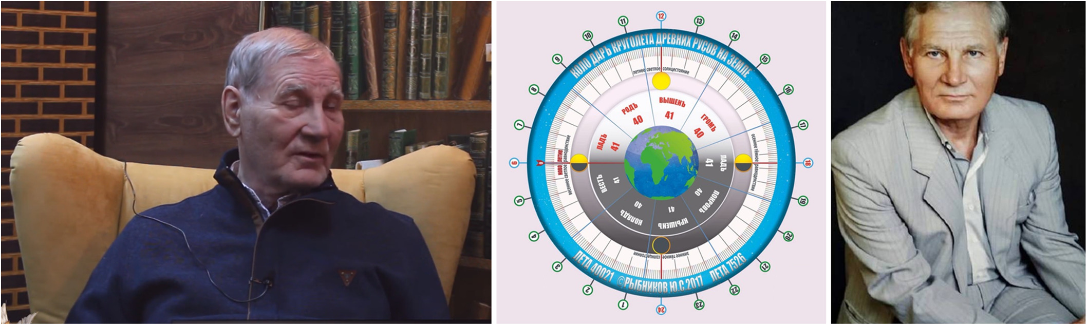 Юрий Степанович Рыбников || 1944 - 2021 = 77 лет, Москва, СССР/РФ, кандидат наук/химия, физика, математика, доцент, преподаватель в МГТУ МИРЭА. Научным сообществом признавался как автор ряда лженаучных теорий. В календарологии известен как автор календарного проекта под названием «колодар» || земной календарь с привязкой к четырем опорным точкам земной орбиты: два равноденствия/двр-дор + два солнцестояния/длс-дзс. 9-месячная структура 365-суточного года в календаре Ю.Рыбникова с 40-суточной продолжительностью месяцев (сороковник = срок), аналогична даарийскому круголету числобога || дкч = формат инглингского календаря, которым пользовались по верованиям неоязычников славяно-арийские народы, проживавшие на территории Даарии/Гипербореи.