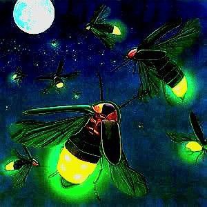 Светлячки в траве сверкают изумрудом.