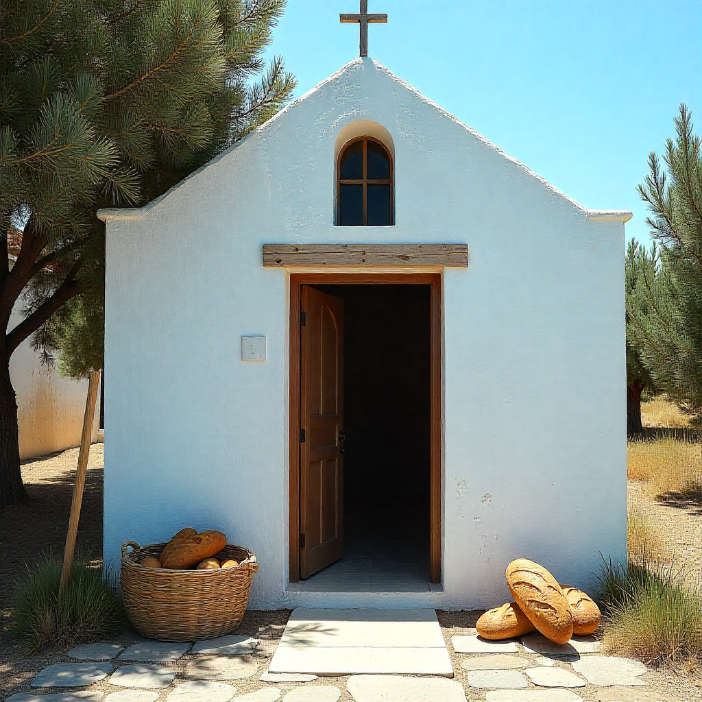 Обнаружив избушку, неподалёку от своего села, бандиты заподозрили, что в ней хранится всё золото мира и решили убить владельца этих несметных богатств. Смертельно ранив его и не найдя ничего ценного в келье, бандиты быстро скрылись незамеченными, в надежде на скорейшую погибель хозяина. Медведи подали друг другу клич о беде и стали оберегать эту келью и приносить целебные травы и малину, а белки поделились запасами кедрового молока. Птицы засеяли в тот год весь его огород пшеницей. С тех пор здесь у всех всегда был хлеб на двоих.