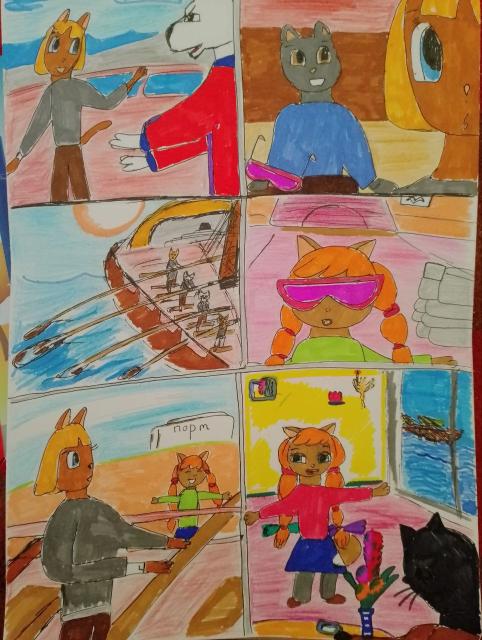 Потом она смотрела видео, где у гребцов отпуск и они ездят на коньках по льду.