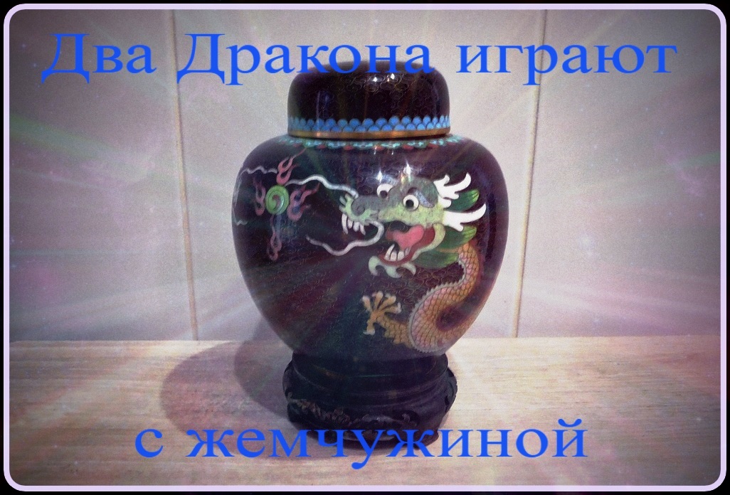 Фото: Кристен (+) Клуазоне, перегородчатая эмаль, два дракона играют с жемчужиной, тёмное с чешуйками поле, 1955 год, Кайтай.