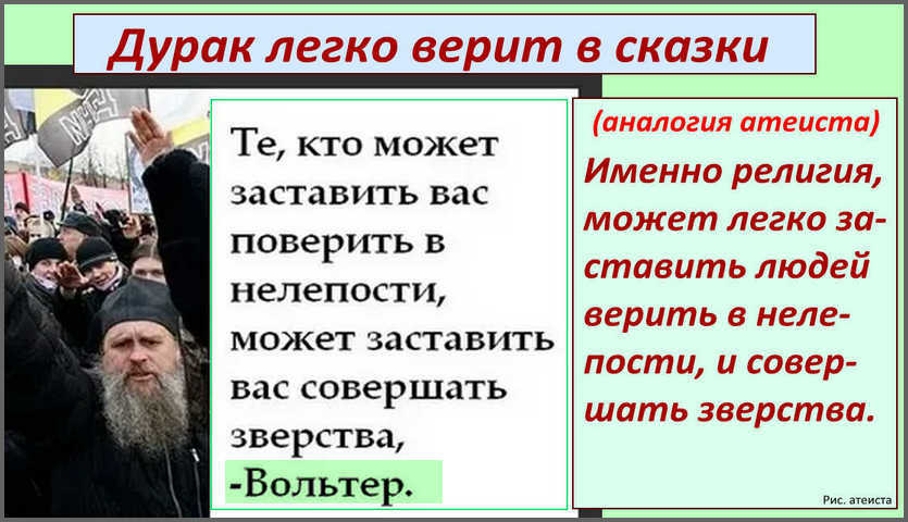 в сказки (нелепости) про богов, и теперь они ярые последователи своих религий, а значит,