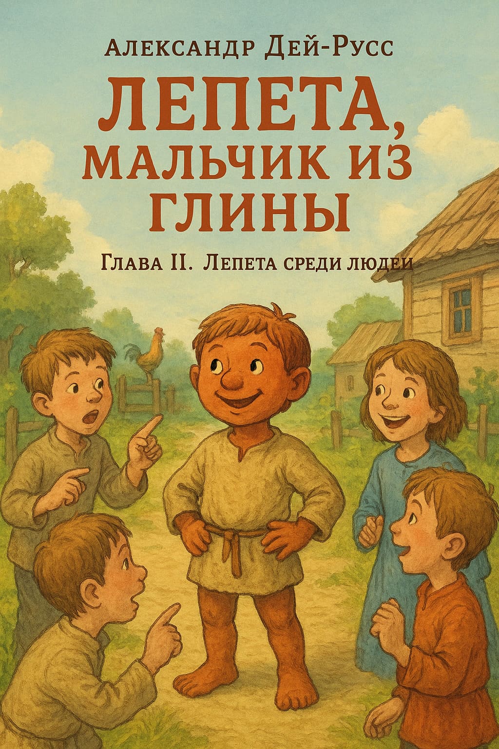 С каждым днём Лепета рос всё любопытнее и разговорчивее. Хоть и был он глиняный, но вёл себя как настоящий мальчишка: бегал по избе, помогал Мирону — то дровишки поднесёт, то сапоги щеткой почистит. Только вот в отличие от других детей не уставал никогда — глина-то не знала усталости.