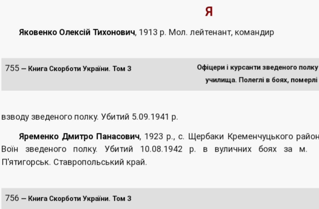 В Амфоре_Я мной собраны фамилии от ЯБЛОНСКИЙ до ЯЩЕНКО; курсанты, политбойцы, красноармейцы и командиры сводного полка Полтавского тракторного училища.