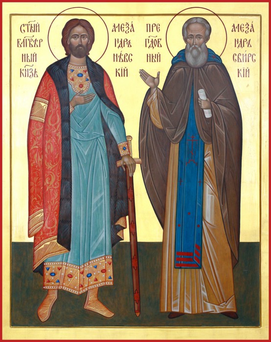 Послушали вы житиё Александра Невского, преподобного Александра Свирского, и это удивительные святые. И хочу сразу поздравить с именинами. Да, у нас есть именинницы, потому что ваше имя Александра имеет тоже самое, что Александр, что мужское имя тоже самое что и женское имя -да! И раньше в древности часто так бывало, что муж давал новое имя жене в честь себя, как продолжение себя. Вот, поэтому сегодня и вы тоже имеете полное право принимать поздравления с именинами.
