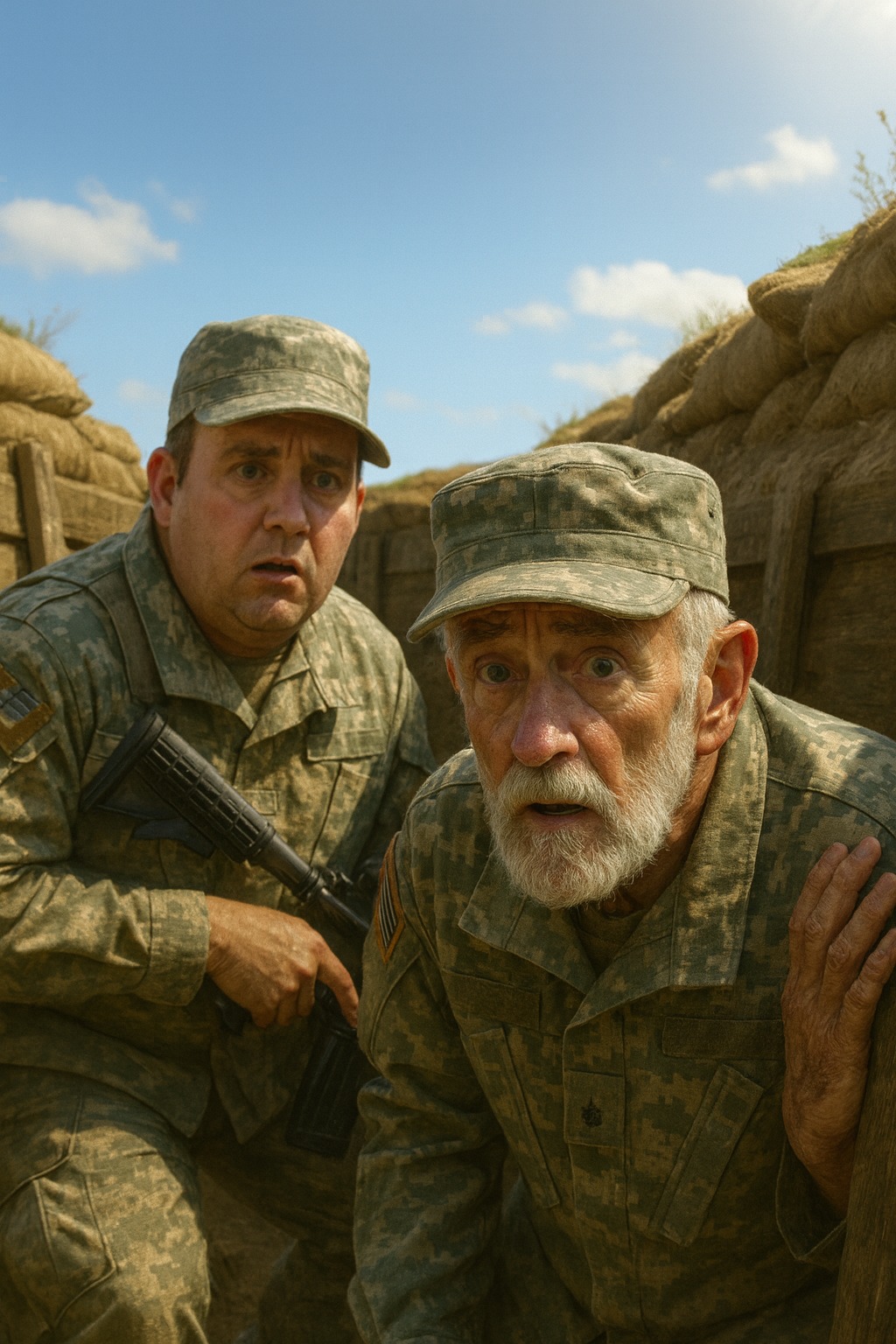 В окоп залетело уже несколько гранат... В живых остались только двое рядовых солдат. Максим — шестидесятисемилетний мужик, потерявший семью и дом, добровольно мобилизовавшийся. Его, как пожилого человека, держали за линией фронта. Опытный слесарь чинил боевую технику. Но война всё может быстро поменять: по случайности Максим оказался на передовой. Второй выживший — Саня, двадцативосьмилетний тяжеловес, тюфяк, вечный студент, который не смог откупиться от призыва.