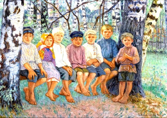 Н. П. Богданов-Бельский. Дети на скамейке написана в начале XX века