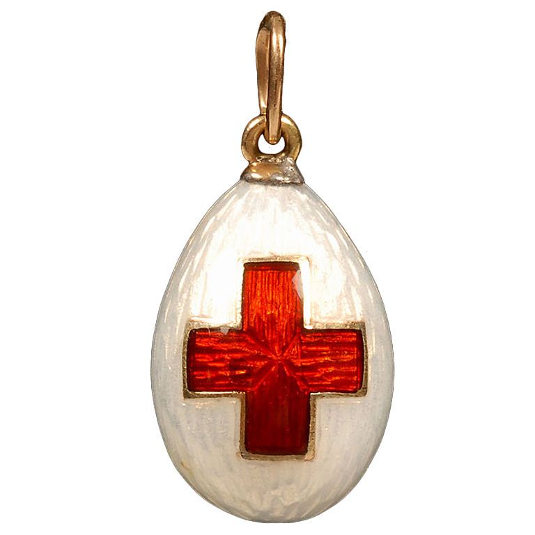 Первое «Красный крест с портретами» — для матушки самодержца. Тщательнейшим образом изготовленное из серебра и золота и украшено переливчатой белой и прозрачной красной эмалью. На двух красных крестах были нанесены даты — «1914» и «1915». По внешней стороне яйца славянской вязью было начертано: «Нет больше той любви, как если кто положит душу свою за други своя».