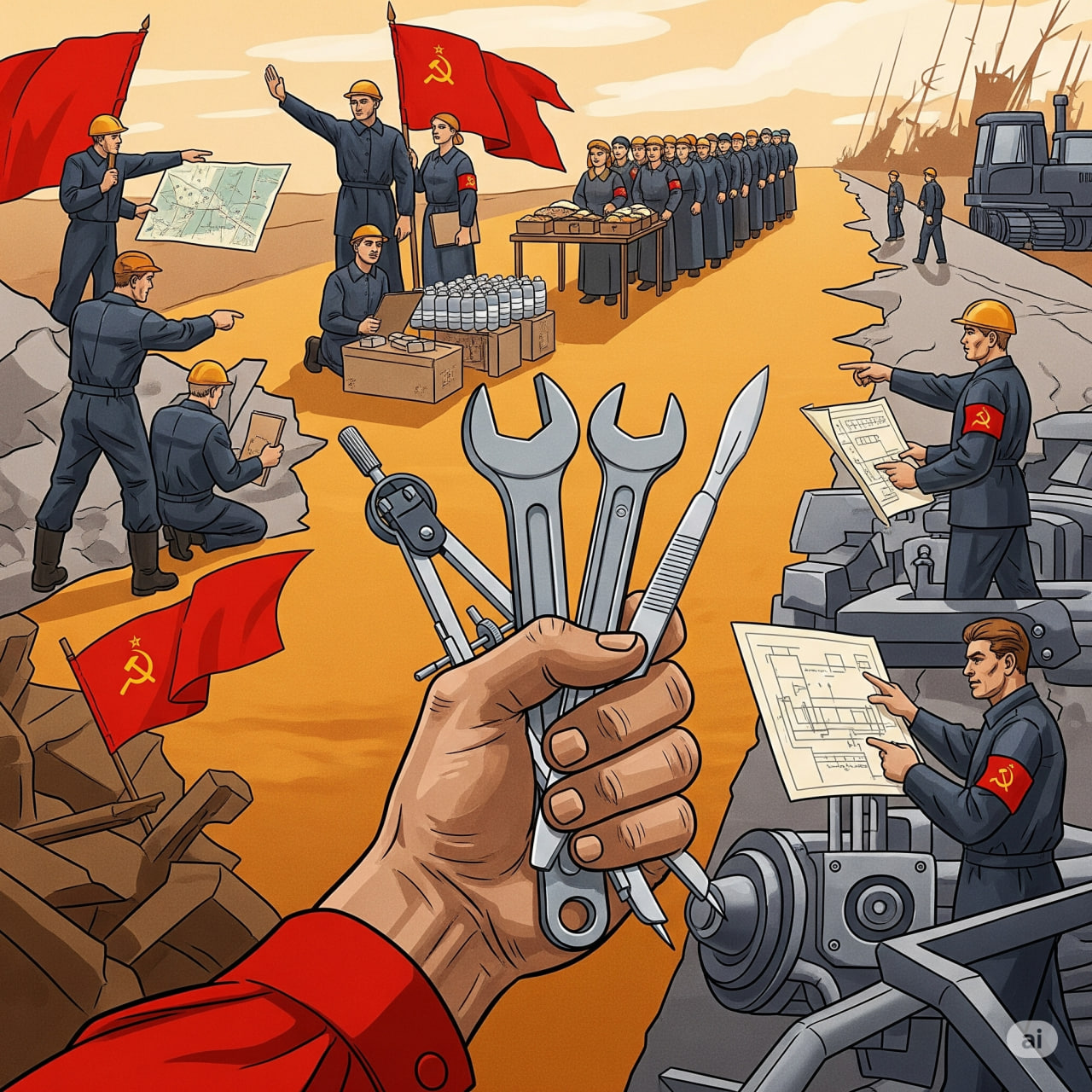 Чтобы избежать полной анархии, любая уцелевшая структура, претендующая на власть, будет вынуждена ввести жёсткий, мобилизационный режим управления. Это означает всеобщую трудовую повинность, карточную систему и ликвидацию личного пространства.
