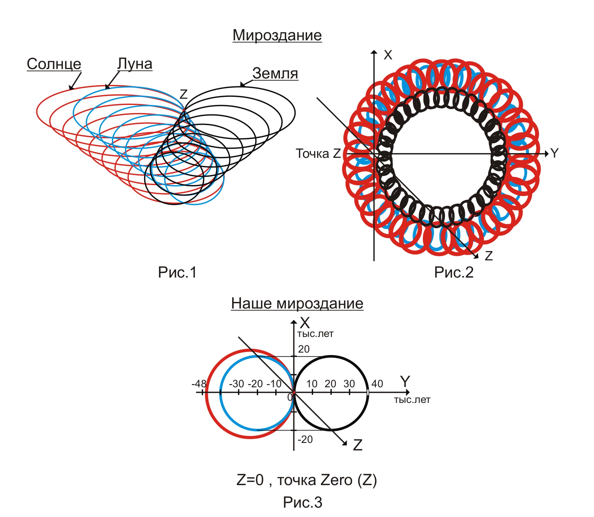 Мироздание начинается с нуля и представляет собой бесконечность и стремится к нулю. Поэтому в тот момент, когда Солнце прекратит свое существование, мироздание в точке равной нулю ( в точке Z) сомкнется в круг (см. Рис. 2).