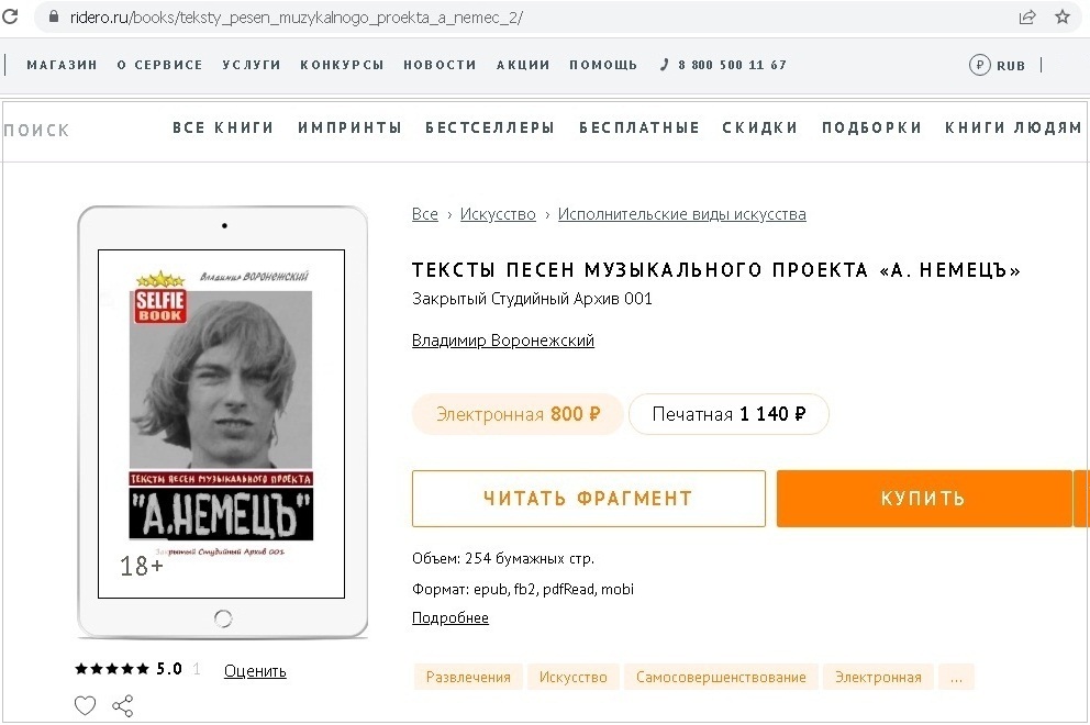 Официальный сайт новой публикации обновлённой версии второй книги В.Воронежского «Тексты песен музыкального проекта «А.НЕМЕЦЪ». Закрытый Студийный Архив 001» размещён по адресу . А сайт первого варианта этой книги был на века вечные заблокирован после введения запрета на её продажу.