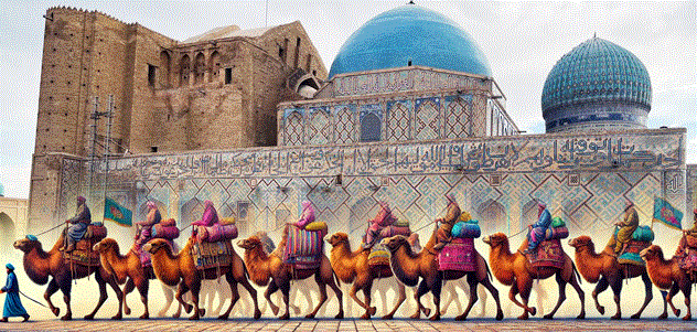 Не все караваны из Китая обязательно шли в Европу. Кто–то шёл из Узбекистана в Иран, кто-то в Грузию, и в итоге, все города на его пути в включались в общий товарооборот и расцветали.