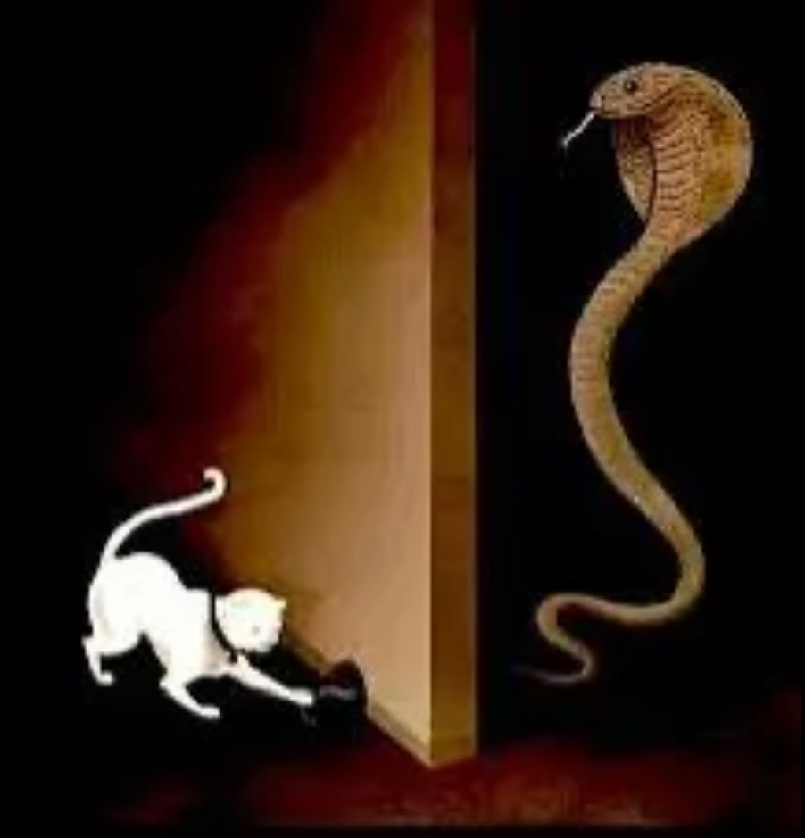 Оказывается, кот увидел из маленькой дырочки торчащий змеиный хвост и подумал, что это крысиный хвост, поэтому захотел вытащить ...