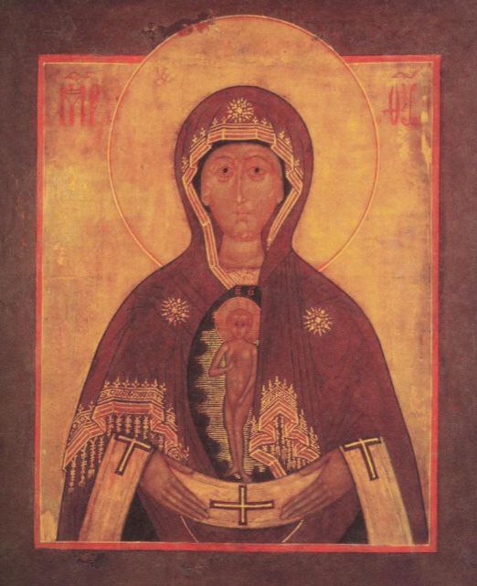 Фото: Икона Богородицы Знамение Торгинская, бывшая Албазинская или Слово плоть Бысть. Сия Благодатная икона была принесена из Москвы в г. Албазин, а из Албазина, после первых нападений на этот город китайцев, икона была казаками перенесена в с. Торг, в 30 вёрстах от Нерчинска.