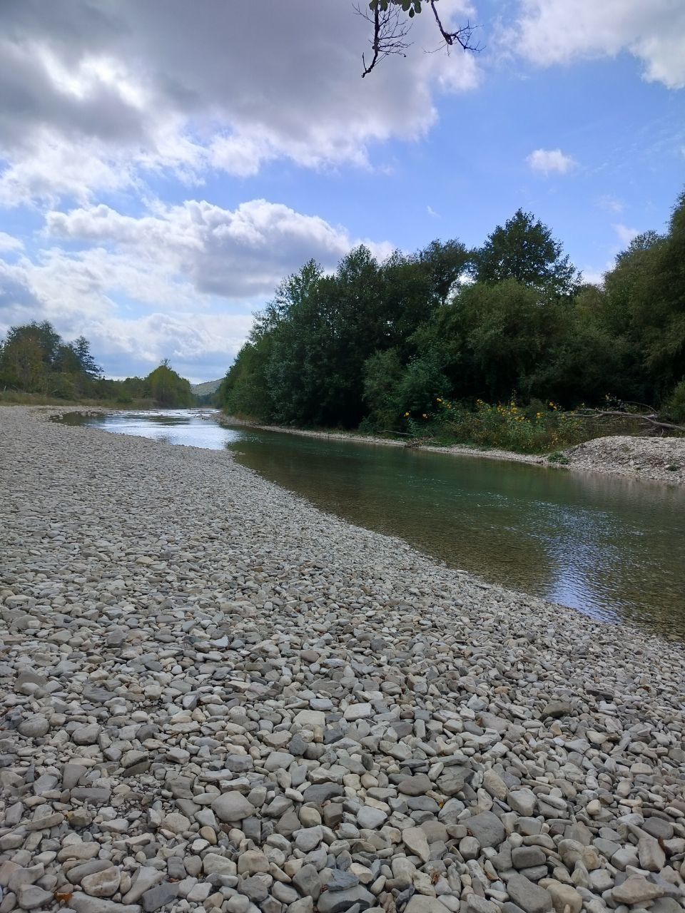 Знакомство с речкой и водой, её течением, её прохладой, скользким дном, неровными камнями.