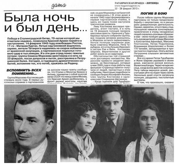 Опубликовано: газета "Таганрогская правда", 22 февраля 2013 г.