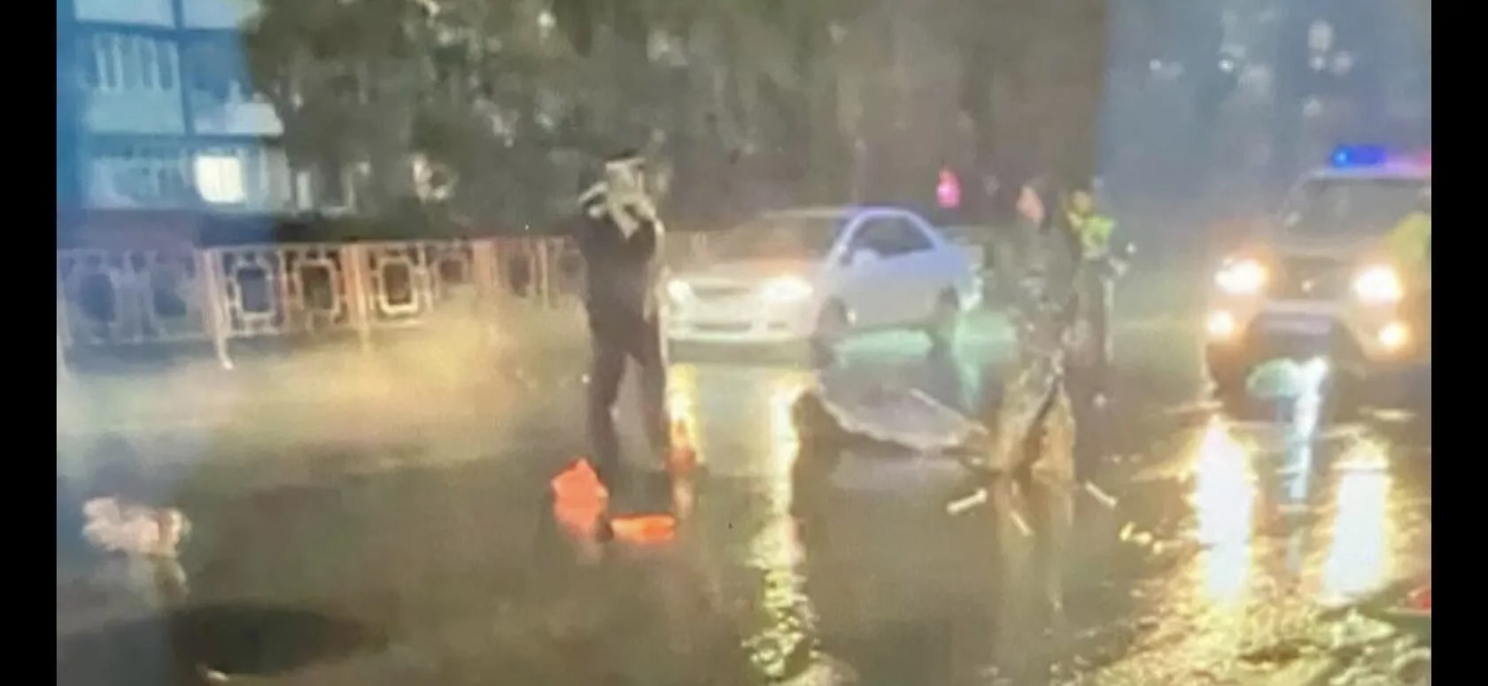 ДТП произошло на дороге, вдали от пешеходного перехода, видимость на дороге была ограниченная, дождь лил стеной.