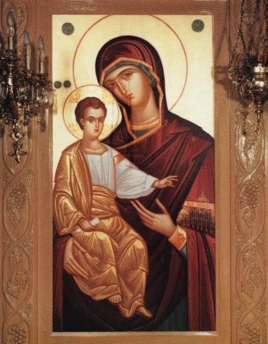 Икона Божией Матери "Одигитрия” находится в храме Албанской Православной Церкви во имя Святителя Николая в Чикаго. 6 декабря 1986 г., в день памяти Святителя Николая, архимандрит Филипп Кофос (Koufos) готовился к службе. После зажжения свечей он увидел, что с Рук Богоматери Капает Влага. Это заметили и две прихожанки храма, помогавшие ему. Вскоре Миро, к их изумлению, начала буквально течь струёй. Икона Плакала! Через два года Миро появилось на Лике Богородицы, а затем, 23 июля 1995 г., всё снова повторилось, как в первый раз. Чудо повторялось постоянно. Верующие собирали Миро, смачивали им другие иконы, и они тоже начинали Мироточить. С тех пор несколько миллионов людей, в том числе иерархи Церкви, посетили храм Святителя Николая в Чикаго и Молились Господу у Чудотворной иконы. По свидетельству отца Закхея (Вуда), множество людей по Молитвам у этой иконы получили исцеление от болезней.