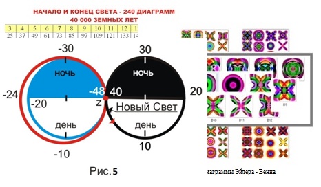 По горизонтали Наше мироздание легко делится на две части (см.рис. 5). Это день и ночь.. Движение по спирали мироздания направлено против часовой стрелки и начиная от нулевой точки Z Новый свет продолжает свое движение в направлении 0.