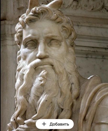 Интересно, что рога у Моисея Микеланджело довольно маленькие и едва заметные.
