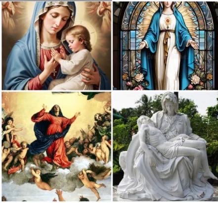 - Церковь признает шесть «формальных» титулов Марии, что соответствует церковному учению и догматам о Ней: Пресвятая Дева Мария, Матерь Божия, Богоматерь, Царица Небесная, Непорочное Зачатие и Успение.