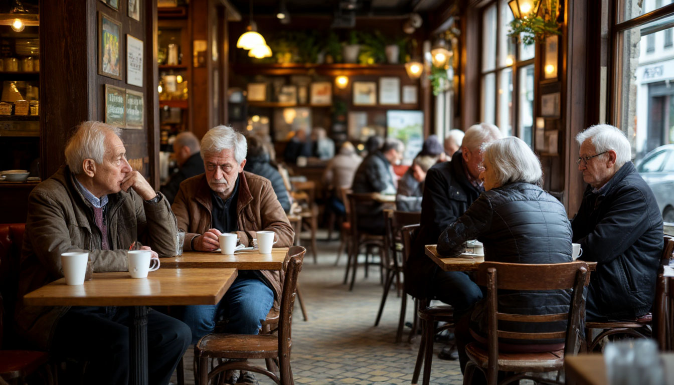 Внутри царила атмосфера тихой меланхолии. Мягкий свет, пробивающийся сквозь витражные окна, окрашивал воздух в теплые, но призрачные оттенки. За столиками, уставленными чашками с остывающим кофе и недоеденными пирожными, сидели люди. Они не разговаривали громко, их голоса были приглушены, словно эхо из прошлого.