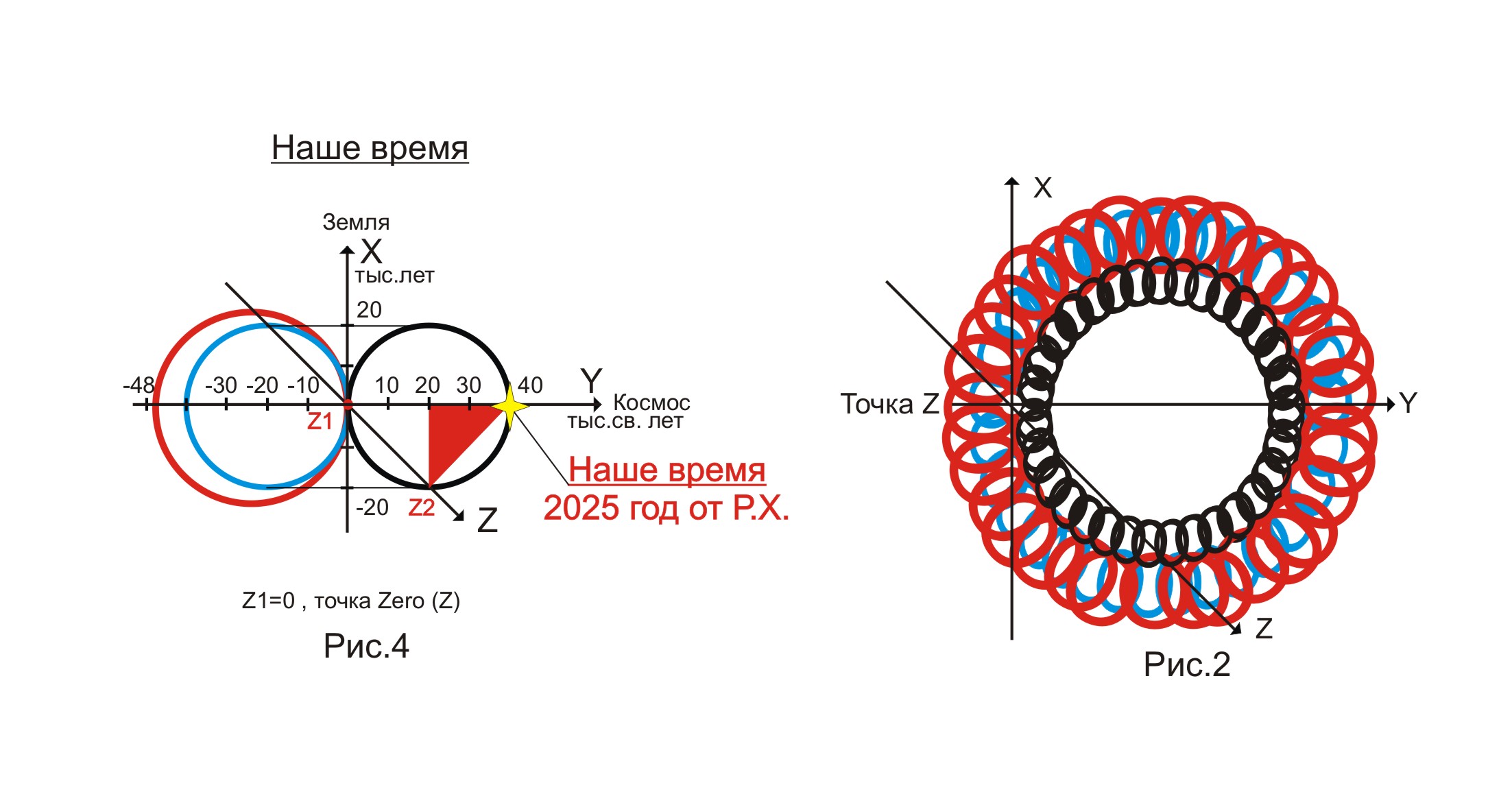 См. рис 4 здесь ось X земное время, ось Y космическое. На рисунке очень хорошо виден «космический смертельный треугольник», который способен не только сократить время Светового года, но и уничтожить все мироздание, придав ему вид, который можно увидеть на рис. 2.