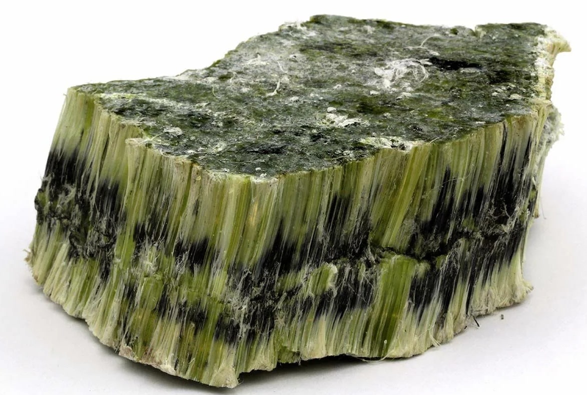 Это мягкий, волокнистый силикатный минерал обладает физическими свойствами, благодаря которым его включают в состав строительных материалов. Однако это представляет серьёзную опасность для здоровья при распылении в воздухе и вдыхании.