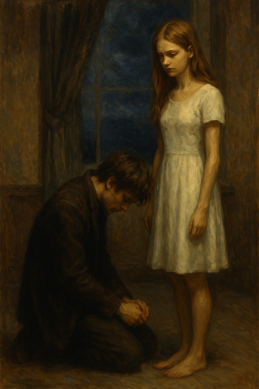 – Признайся уже, что у тебя просто нет храбрости идти дальше! Ты не стОишь ничего! - она начала повышать голос, но он упал на колени перед ней, опустив голову.